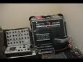 Description: Ramon working with the Orgon Modular Synthesizer, EMS VCS3 and a Roland TR-606. VCS3 Specs: The VCS3 (nicknamed the Putney) is an analog monosynth housed in a distinctive angled wooden case, a truly classic synth. EMS (Electronic Music Studios) was created in England back in 1969. The VCS3 was one of their first synths and it is still a great, unique, funky little unit! Pictured above is the Mark I model. Pictured is another unit with the small wood-cased DK2 voltage-control keyboard required to play the VCS3. It has three oscillators, and a unique matrix-based patch system. Instead of patch wires, the VCS3 uses a patchbay grid in which the synth components are laid out, and signal routing is accomplished by placing small pins into the appropriate slots. The VCS3 was, in actuality, a modular type synthesizer reduced down to an extremely portable size. t generates familiar sci-fi sounds (Dr. Who) and other truly analog sounds. Unfortunately, the oscillators tend to drift out of tune. There's a Noise Generator, 2 Input Amplifiers, 1 Ring Modulator, 1 Voltage Controlled Low Pass Filter (VCF), 1 Trapezoid Envelope Generator, Joy-Stick Controller, Voltage Controlled Spring Reverb unit and 2 Stereo Output Amplifiers. Additonally, the VCS3 was also sold in a plastic breif-case and called the Synthi A. The major Synthi 100 system was based on three VCS3's strung together. Some ultra-rare commercially unavailable synths EMS made include the VCS4 in 1969 which was basically 2 VCS3's plus a keyboard. And the Synthi Keyboard 1 of 1970 was just a VCS3 with a mini 29-note keyboard. Many of these EMS synth's have been used by Brian Eno, Tangerine Dream, Pink Floyd, Stereolab, Yes, Aphex Twin, Autechre, Jean-Michel Jarre, Astral Projection, Klaus Schulze, Depeche Mode, Vince Clarke, Add N to (X), The Who, Todd Rundgren, Recoil, Freddy Fresh, and many more. Roland TR-606 Specs: A cool little box! So primitive and cute! The 606 was the percussion side-kick to the TB-303. It even looks like the 303. It stores up to 32 patterns and 8 songs. The 606 allows switching between Pattern Play and Write mode while running - making the 606 the only drumcomputer in the X0X series that can be edited while performing and switching patterns. It is also possible to link up to 4 consecutive patterns in Pattern Play mode. There is only a mono audio output, however there are mods from Kenton Electronics and Analog Solutions that will add individual outputs for each drum tone. The 606 has seven analog drum sounds which are simple, yet great! Kick, Snare, 2 toms, open hat, closed hat, cymbal, accent. The hi-hats are a very tinny electronic sound and its toms are great for soft tribal patterns. These seven sounds alone are still quite popular today, and the 606 has been used by Uberzone, Cirrus, Sneaker Pimps, Download, Aphex Twin, Astral Projection, Nine Inch Nails, Mr. Oizo, Jimi Tenor, Kid 606, OMD, Moby, Freddy Fresh, Autechre, Luke Vibert, and Union Jack. For control, the 606 can receive or transmit DINSync for synchronization with other TR and TB family instruments. There are also two trig-outs on the unit, which make it very valuable as a pattern-programmable dual-channel trigger sequencer. It's often used for this by various people (Jimi Tenor) to 'drive' other sequencers and the like. Modifications Editable Drum Tones! - Analog Solutions external modification adds tuning for all drum tones, snap and decay for the snare drum, decay for the cymbals and a sweep effect for the toms. Individual Outs! - Analog Solutions adds 5 individual outputs for cymbals, kick, snare, toms and hi-hats. Synhouse MIDIJACK DINSYNC - Adds a MIDI jack so the 606 can be sync'd to external MIDI triggers and tempo sources. |